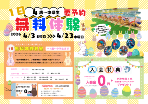 ※体験当日は水着・キャップ・ゴーグル・タオルを